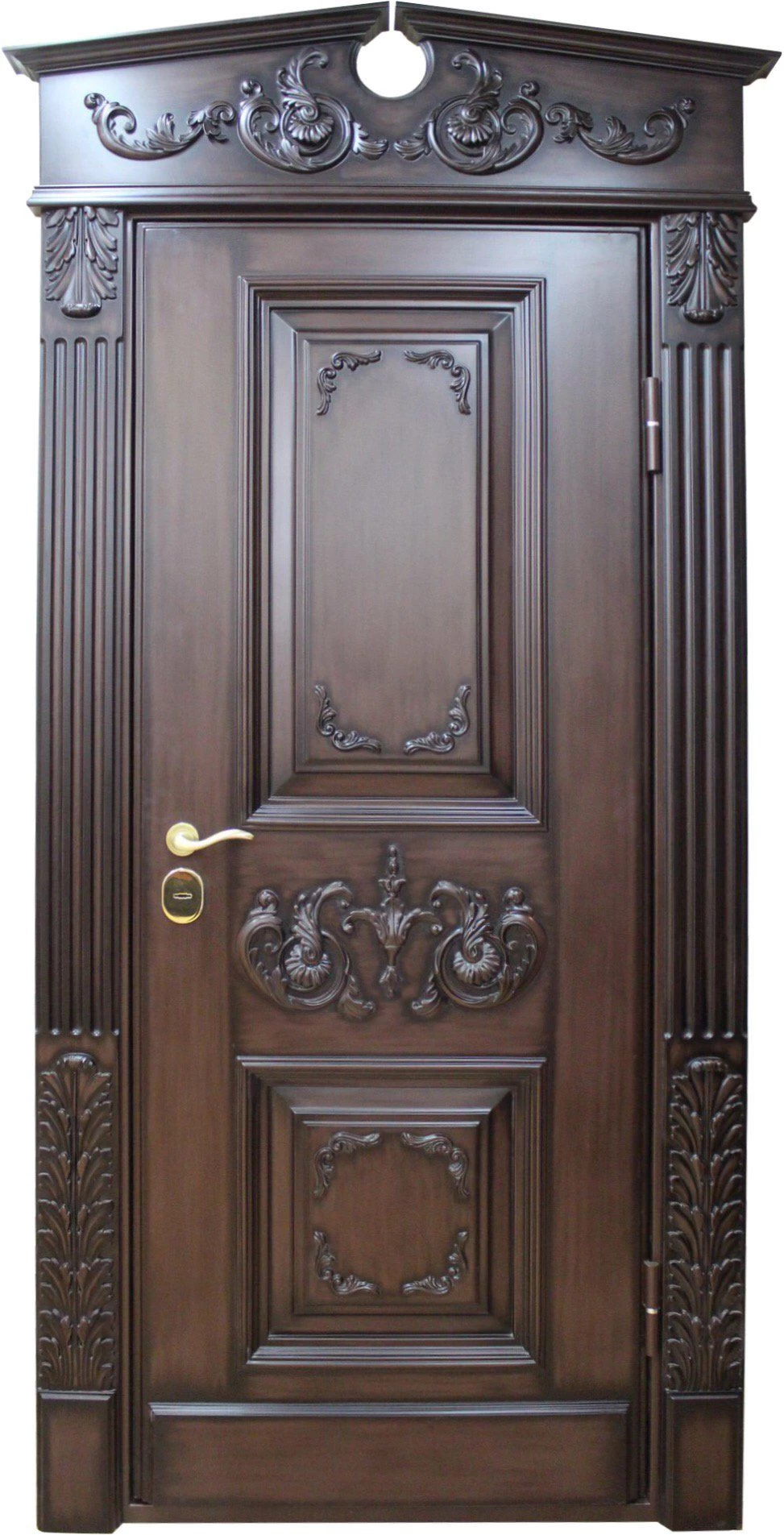 В основе конструкции элитных дверей в Петергофе - стальной лист толщиной не менее 2.0 мм, дверное полотно укреплено ребрами жёсткости (могут быть горизонтальными, вертикальными, комбинированными). При желании можно сделать дверь из стали 3.0 и даже 4.0 мм. Но тут есть ряд особенностей. Полотно и каркас такой двери невозможно сделать из гнутого профиля, конструкция только сварная. Ну и надо помнить, что двери из толстого металла очень тяжёлые, а следовательно, травмоопасные.