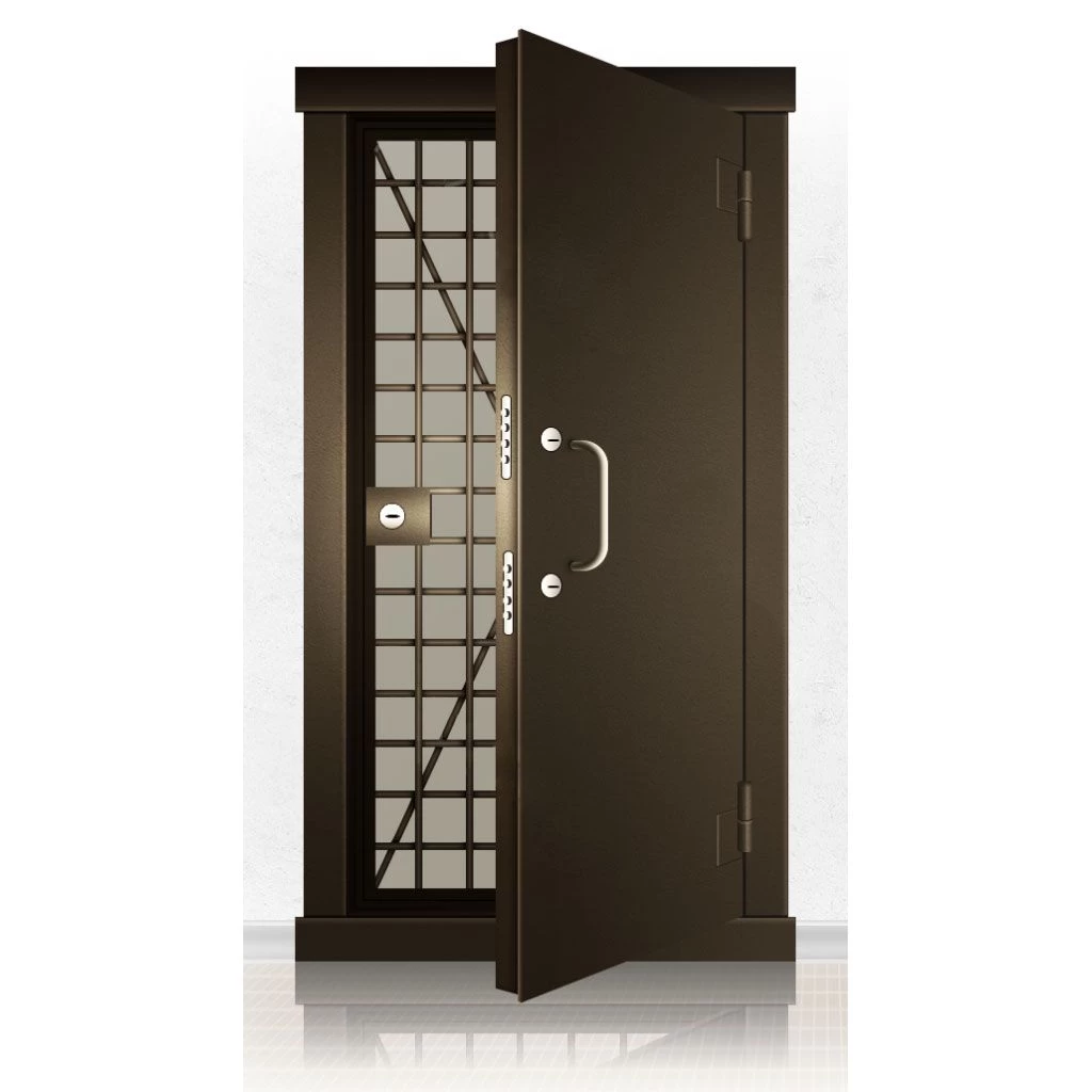 Металлические двери КХО и КХН представляют собой входные блоки, обладающие высоким уровнем взломостойкости и состоят из трех основных элементов: усиленного каркаса, сплошного металлического полотна и решетчатой двери. Дверной блок изготавливается из стального уголка 100*100 мм. Места крепления блока к стене цементируются и закрываются стальными наличниками шириной 40 мм. Крепеж заходит вглубь стены на 80 мм. В конструкции внешней створки монтируются ребра жесткости, для обшивки используется сталь толщиной не менее 3 мм. Внутренняя решетка изготавливается из прутка диаметром 16 мм. Размер ячеек решетки должен составлять не более 15 на 15 см. В точках пересечения прутья надежно приваривают друг к другу. В КХО и КХН необходимо поддерживать определенную температуру и влажность. Для этого внутреннее пространство глухой двери заполняется теплоизоляционным материалом, а по периметру двери приклеивается уплотнитель. Такие двери оборудуются замками с повышенным уровнем взломостойкости. Специализированные двери КХО и КХН в Петергофе могут быть оснащены сигнализацией, в конструкции могут быть проушины для навесного замка и элементами для опечатывания. Если идет речь о двери в комнату хранения оружия, в створке оборудуется окно для выдачи оружия и спец. средств, которое накрывается стальной дверцей.